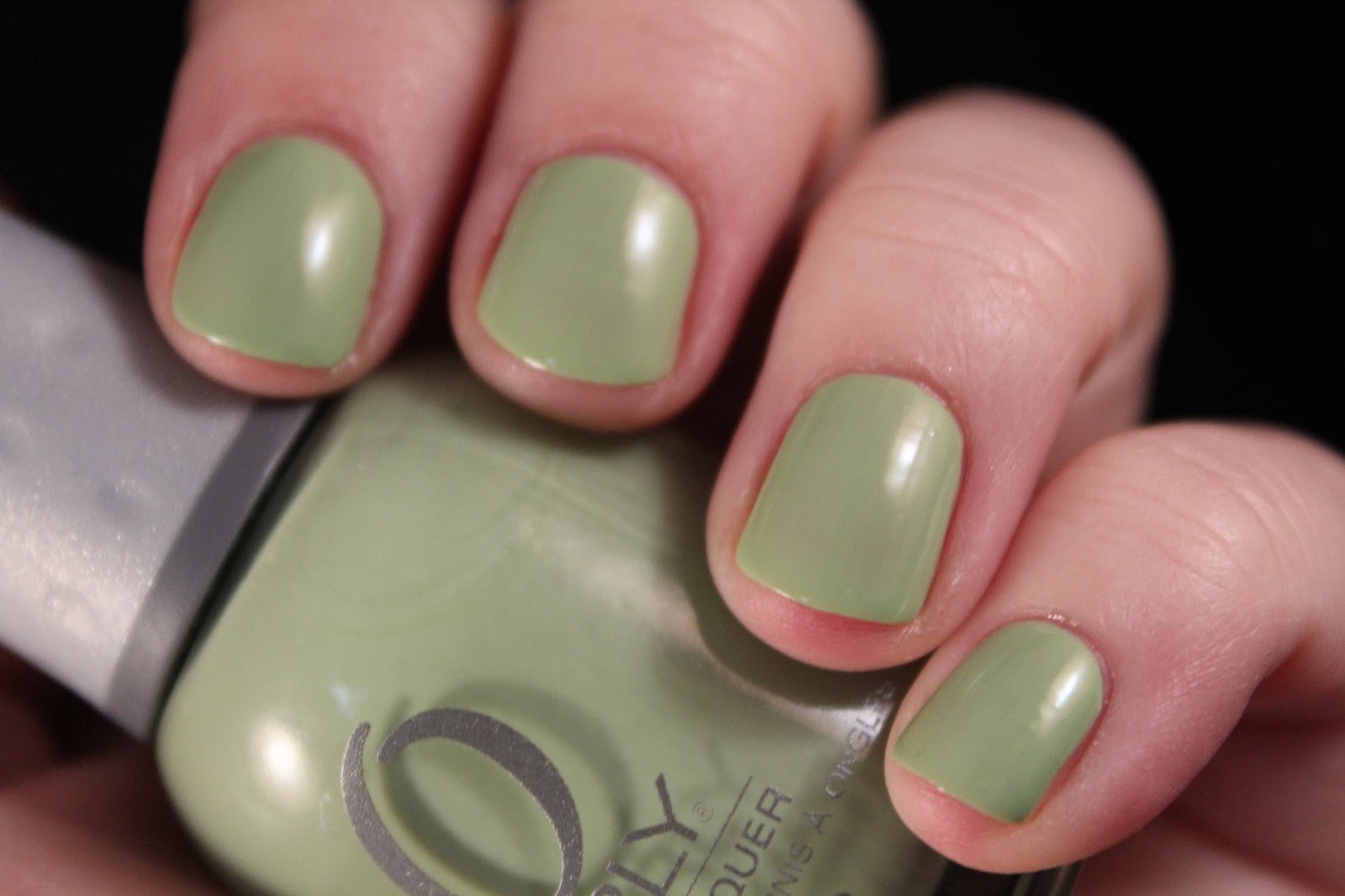Orly Coachella Dweller from their Spring 2013 collection is a dusty spring green shimmer. The shimmer is really faint, but it's there and adds a little something special to this polish. As with most Orly polishes, it has a great, easy two coat formula, and they have some of the biggest bottles out there right now btw, giving you a lot o' bang for your buck. A.